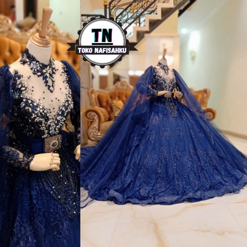 Baju gaun pengantin warna biru nevy gelap dongker full payet wedding dress .